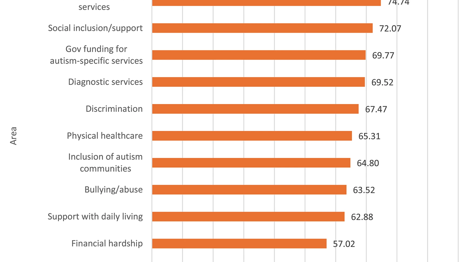 Across groups, areas that require the most urgent changes are education, public awareness and understanding of autism, employment, and government funding for autism-specific services. Differences in results between groups reflect their specific needs and experiences. Discrimination is a crucial area for change according to autistic people with formal diagnosis of autism, whereas autistic people without formal diagnosis indicate diagnostic services as a priority for change. According to parents/carers and members of autism-related organisations, changes are also needed to improve social inclusion of autistic people. Other areas of priority for change across all groups include mental healthcare (within top 10 for autistic participants and parents/carers), support with daily living, and post-diagnostic services (the latter two within top 10 for parents/carers and members of autism-related organisations). For some areas, their identification and importance as priorities for change significantly varied with whether participants were autistic or formally diagnosed and autistic participants’ gender. Comparisons across countries with the greatest representation in the survey – Germany, the UK, France, Spain and Poland – revealed consistent priorities.